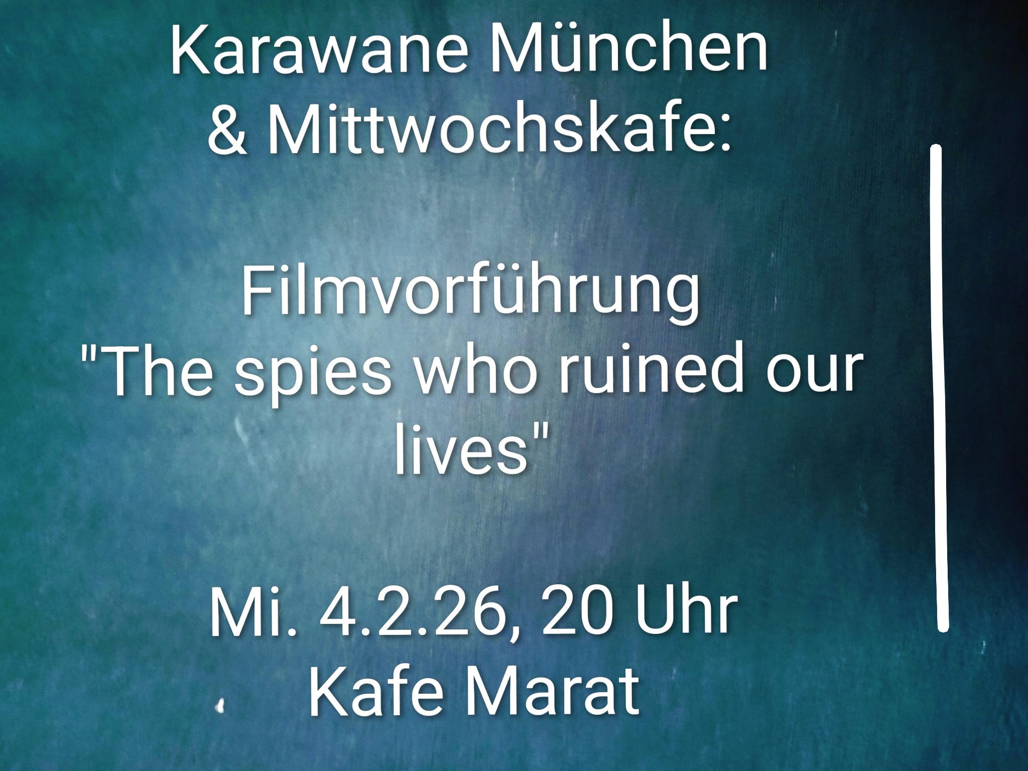 Die Karawane München zeigt mit dem Mittwochskafe den Film „The Spies who ruined our lives“ am Mittwoch, den 4.2.2026, 20 Uhr.